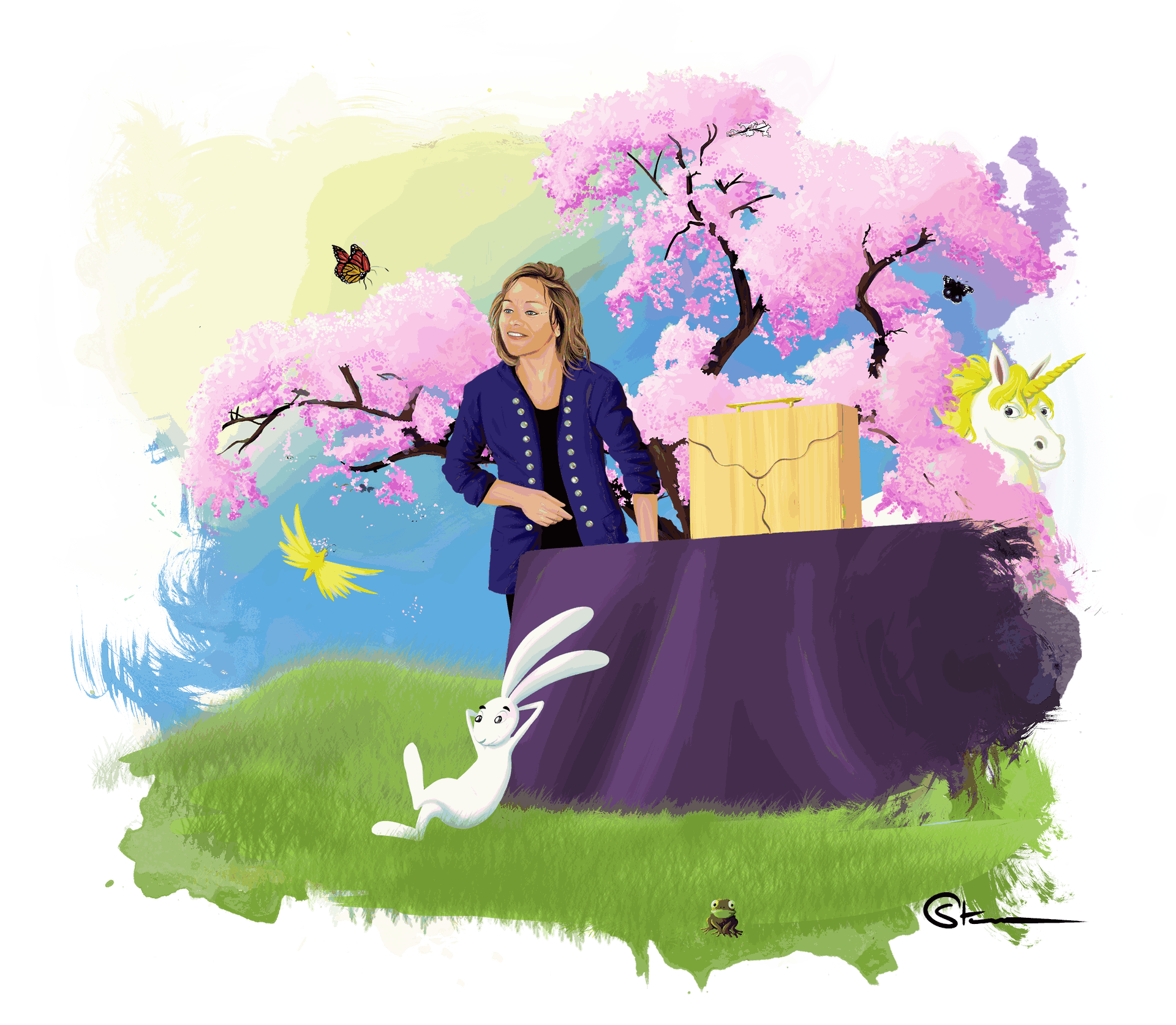 Je réalise des œuvres en direct, la technique varie en fonction du temps imparti.